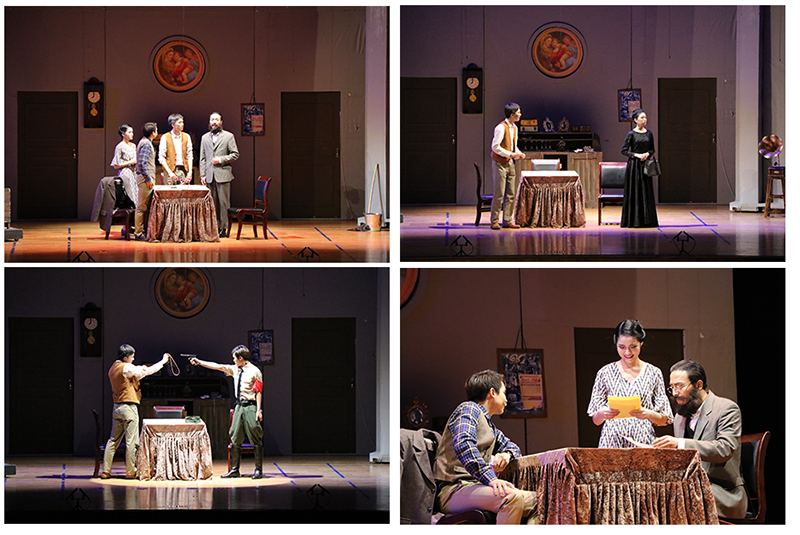 随着三遍场铃的依次响起,在现场观众的期待中,欧洲经典剧目《屠夫》正式拉开了序幕。《屠夫》讲述了一个普通的肉铺老板伯克勒一家被卷入法西斯专政的政治漩涡中的故事。剧中伯克勒一家和当时的普通家庭一样承受着战争所带来的苦痛,人生的悲欢离合在舞台上呈现得淋漓尽致。精湛的演技深深打动了在场师生,当最后一幕演毕,场上爆发出热烈而经久的掌声。