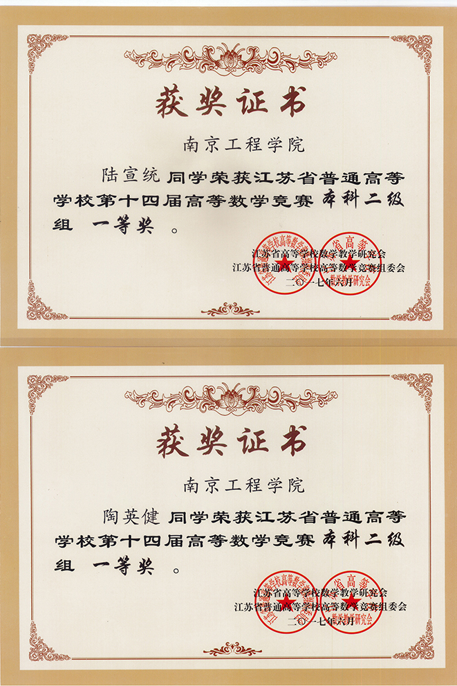 近日,江苏省非理科专业高等数学竞赛成绩揭晓,我校学子再创佳绩。本次比赛我校共选送149位同学参赛, 124人获奖,获奖率高达83%,其中29人获得一等奖,45人获得二等奖,50人获得三等奖。