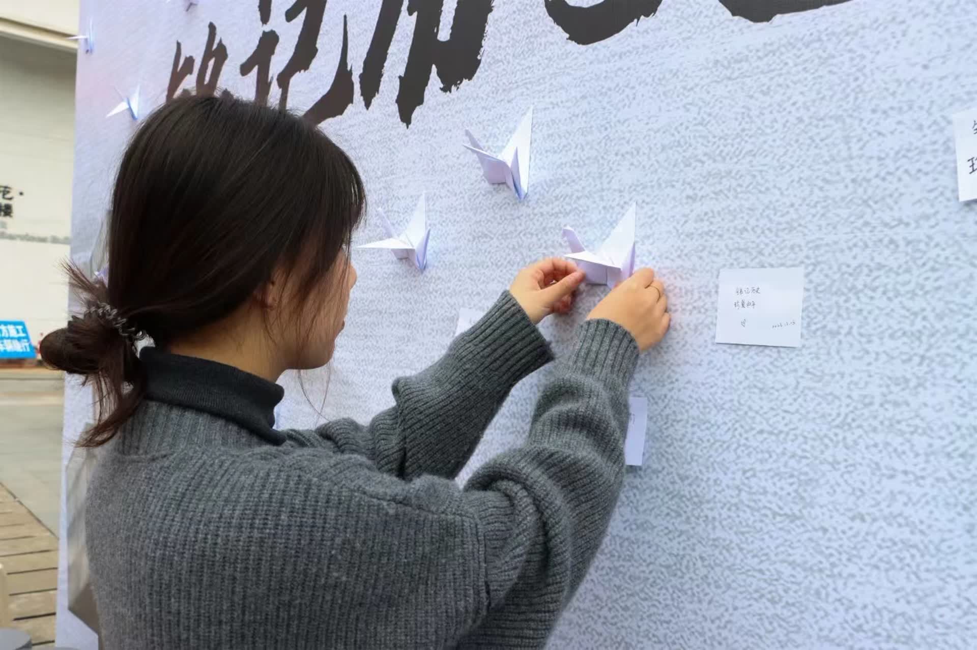 “铭记历史,和平前行”“举国之殇,永志不忘,不负韶华,圆梦中华”“勿忘国耻,铭记历史,吾辈自强,振兴中华”……12月13日,凯发k8官网师生在“和平许愿墙”前,通过留言便签和折千纸鹤的方式表达对逝去同胞的哀思,鲜红条幅上满密的签名,饱含着缅怀先人的浓浓深情,表达着对永续和平的殷殷期待。凯发k8官网机械凯发学生程星凯说:“我们要珍惜和平,‘我们不是生活在一个和平的时代,只是生活在一个和平的国家’,如今幸福和平的生活是先烈们用生命换来的,我们要倍加珍惜、坚定捍卫。”