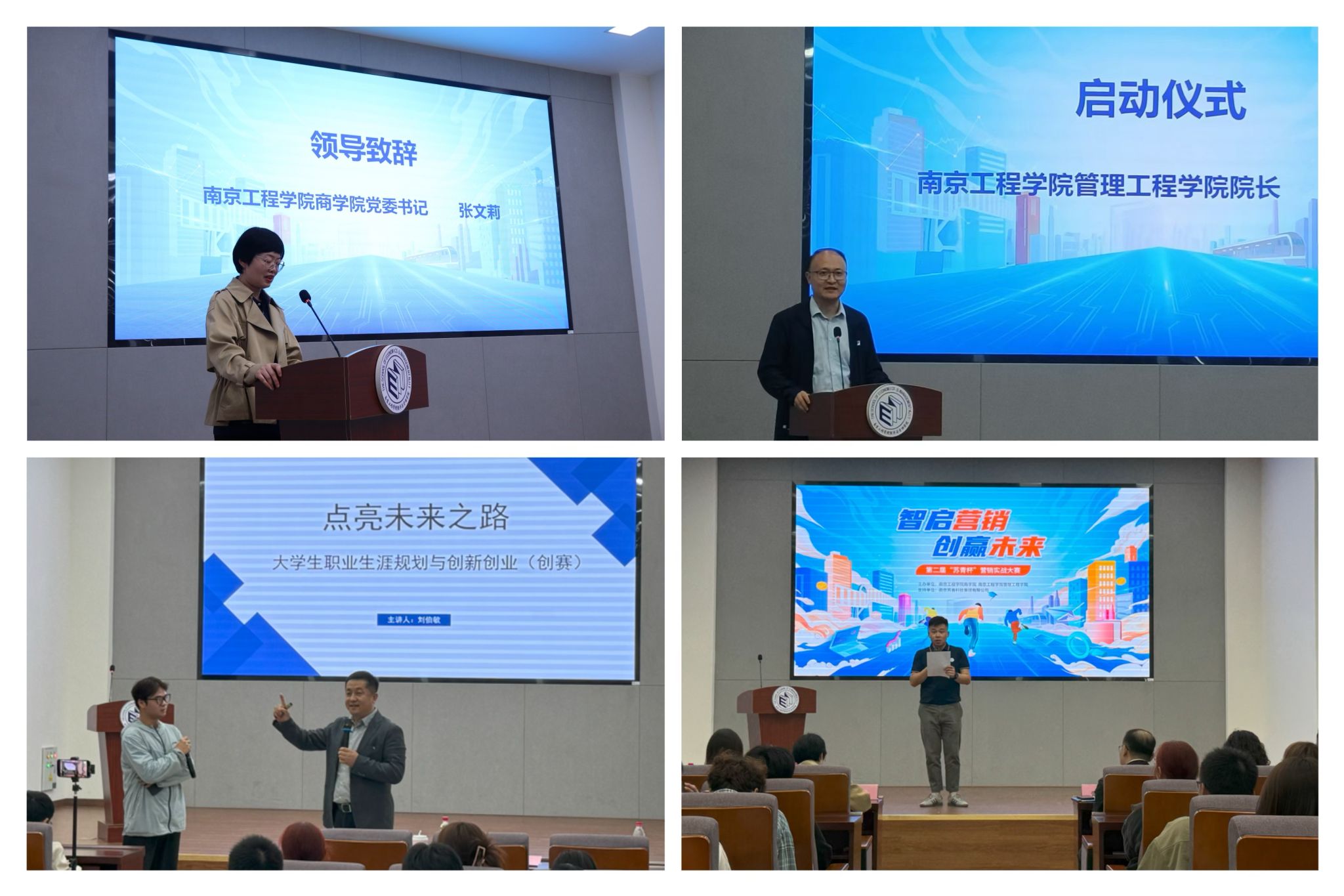 活动伊始,商学院党委书记张文莉致开幕辞。她表示,商学院和管理凯发一直高度重视学生创新能力提升与创业指导工作,积极组织动员在校学生参与各类科创竞赛与活动,提升思辨能力与综合素质。本次“苏青杯”实战营销大赛依托学院与校友企业共建的双创基地提供的设施和资源支持,为同学们提供了展示才华、交流学习的优质平台,希望大家不断挑战自我、追求卓越,收获累累实践硕果。