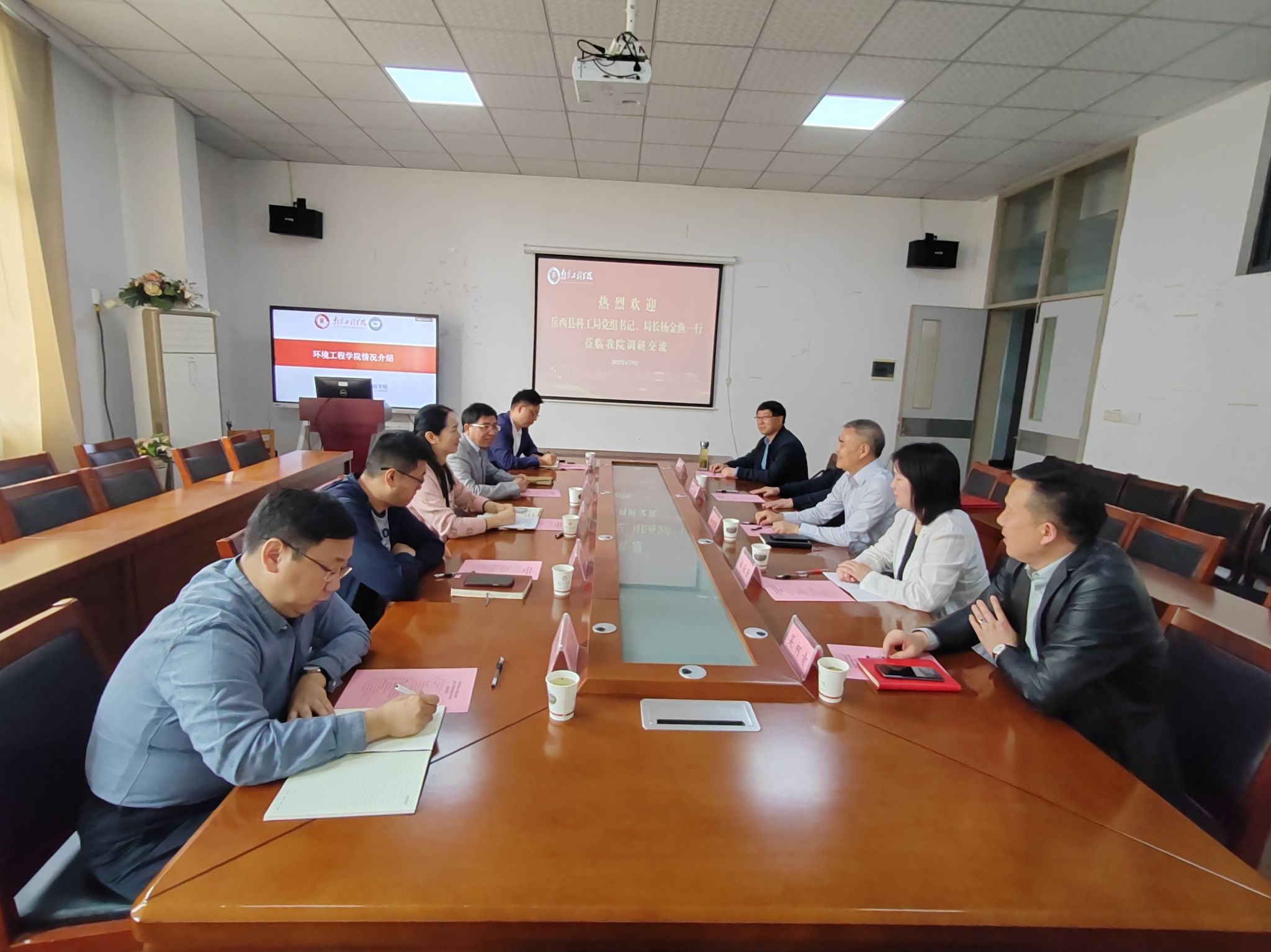 4月9日上午,岳西县科技工业信息化局党组书记、局长杨金渔一行来访环境凯发调研交流。学院党总支书记黄赛平、党总支副书记兼副院长(主持行政工作)吴功德在文理A303会议室热情接待了来宾并座谈。